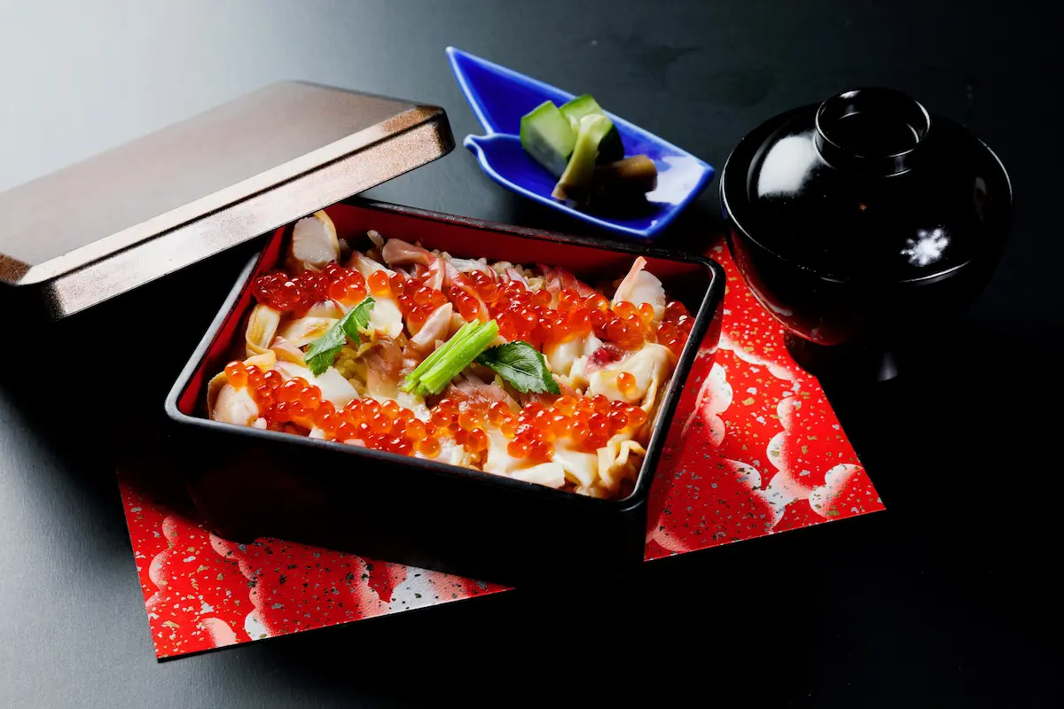 秋のはらこ飯から季節はほっき飯へバトンタッチ。波奈ではそのほっき飯にイクラをのせてより豪華に着飾りました。